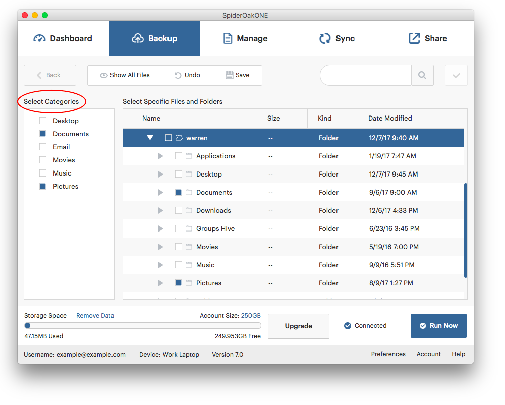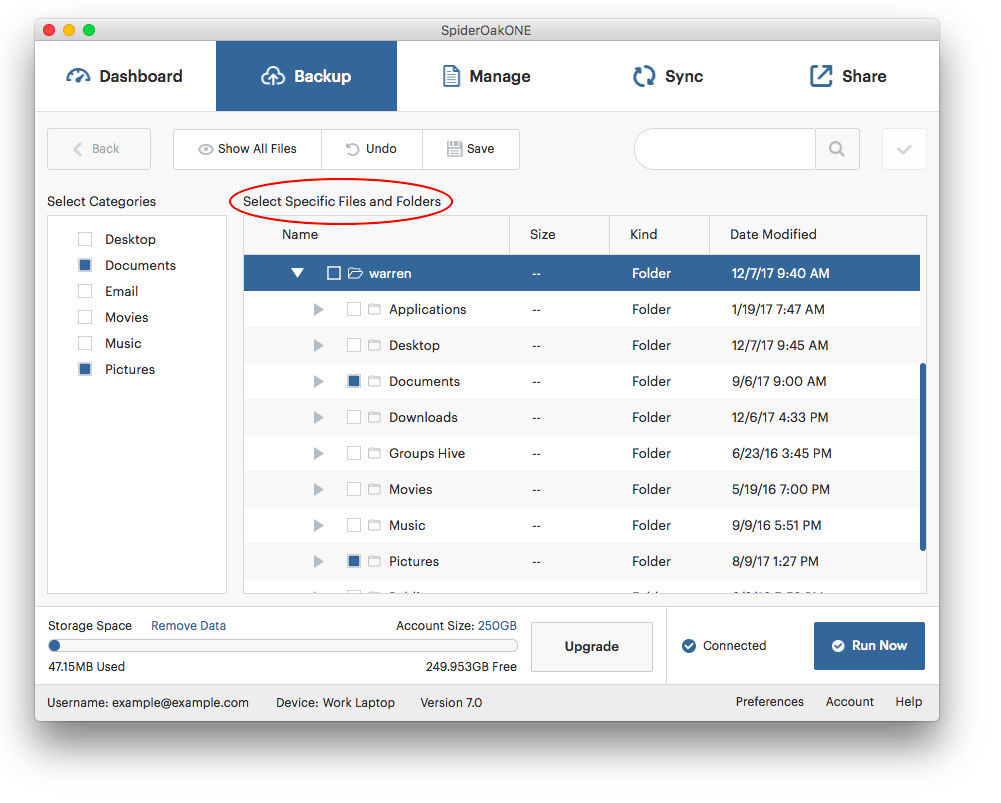 Ahora tienes la opción de respaldar tus archivos por categoría o seleccionar archivos y carpetas específicas.
