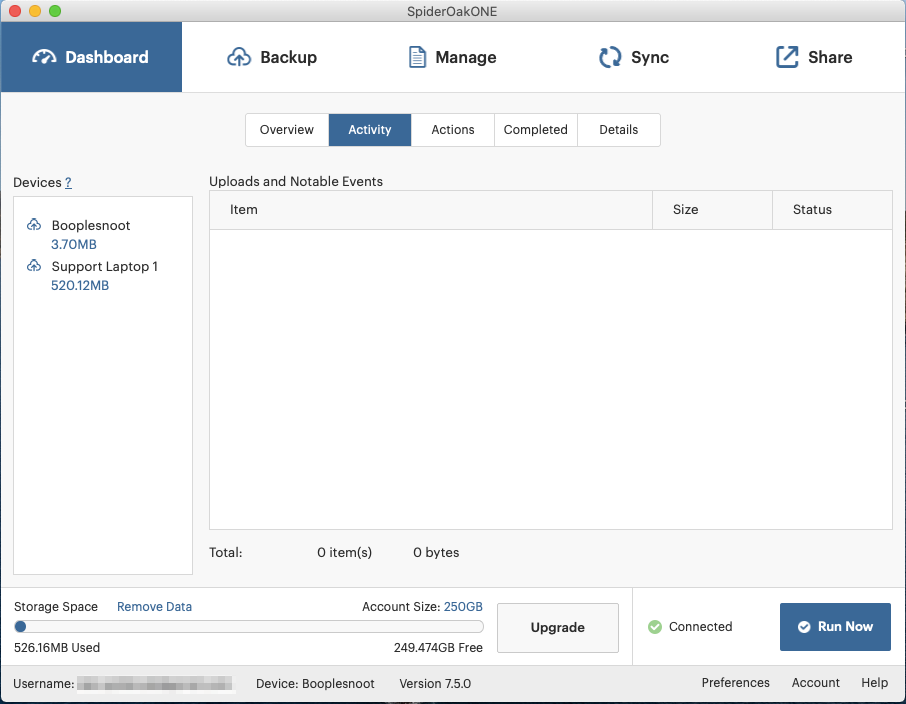 Esta subpestaña muestra los procesos actuales que están ocurriendo dentro de la aplicación y que están relacionados con tu conjunto de respaldo o con cualquier sincronización que hayas configurado, mostrando el estado de cada archivo individual que se está respaldando en tu cuenta.
